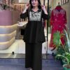 Women’s Chic Embroidered Cotton Slub Kurta Pant Set Size -L